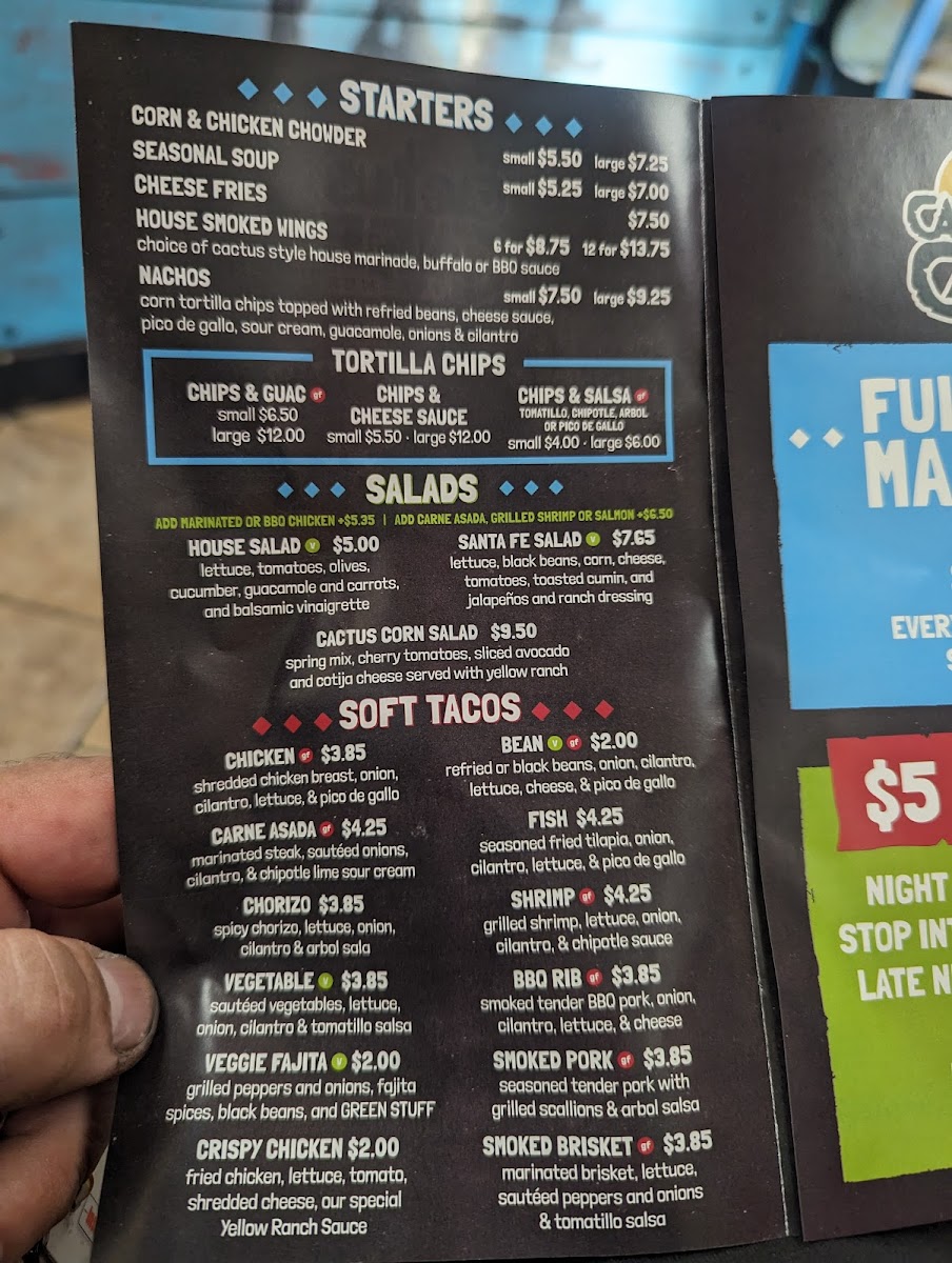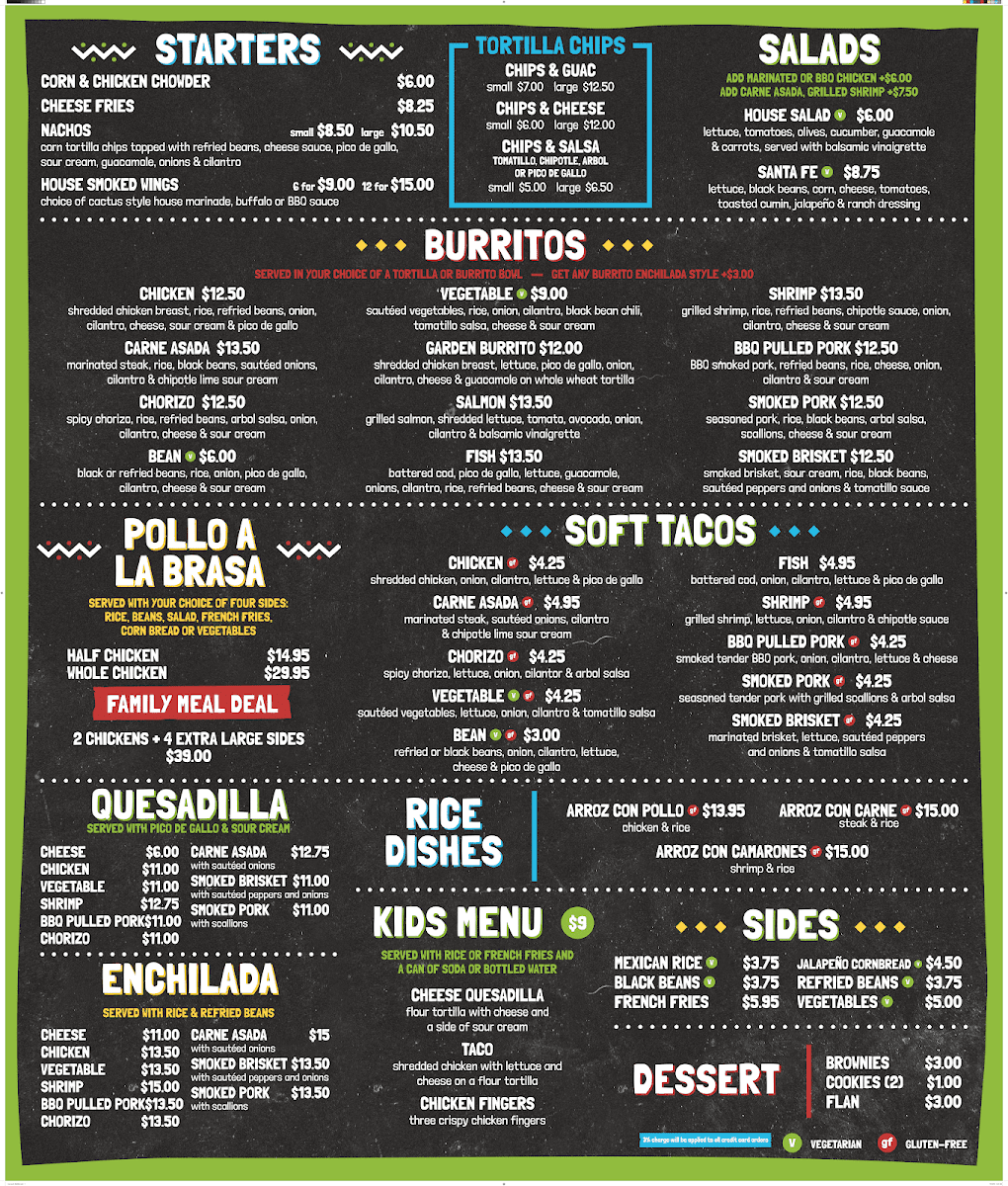 As you explore their diverse menu, don't overlook the enticing Santa Fe Salad, featuring crisp lettuce, zesty black beans, and a dash of jalapeño ranch dressing that adds just the right kick for $7.65. The Cactus Corn Salad, served on a bed of fresh spring mix, is another must-try for those looking for a twist on traditional fare—delicately mixing sweet corn and creamy cotija cheese.